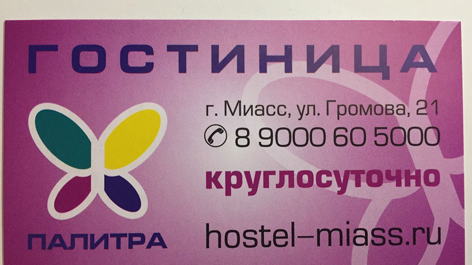 Отдыхали с женой в Миассе, оттачивали свои навыки катания на сноуборде, в Солнечной долине. Остановились в гостинице "Палитра", что в 15 минутах езды на машине. Заселились в прекрасный номер с телевизором, холодильником, туалет и душ в номере. Качественная ежедневная уборка, приветливый персонал. Рекомендую.